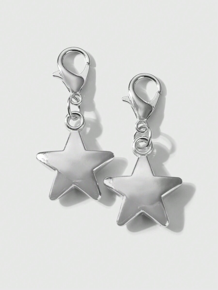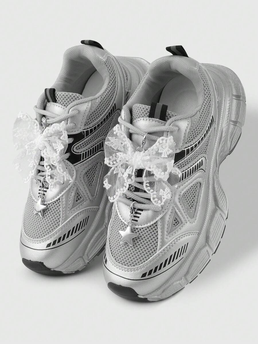 Kawaii 4pcs/Set Chic Minimalist Versatile Highly Attractive White Mesh Embroidered Lace Bow Decor CCB Star Shoe Clips Accessory Combination, Suitable For Women And Girls, Holiday Gift