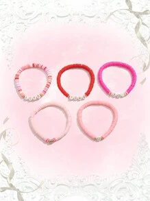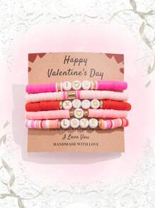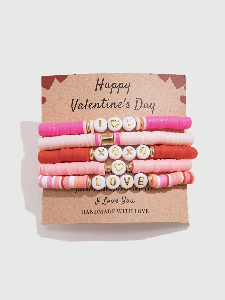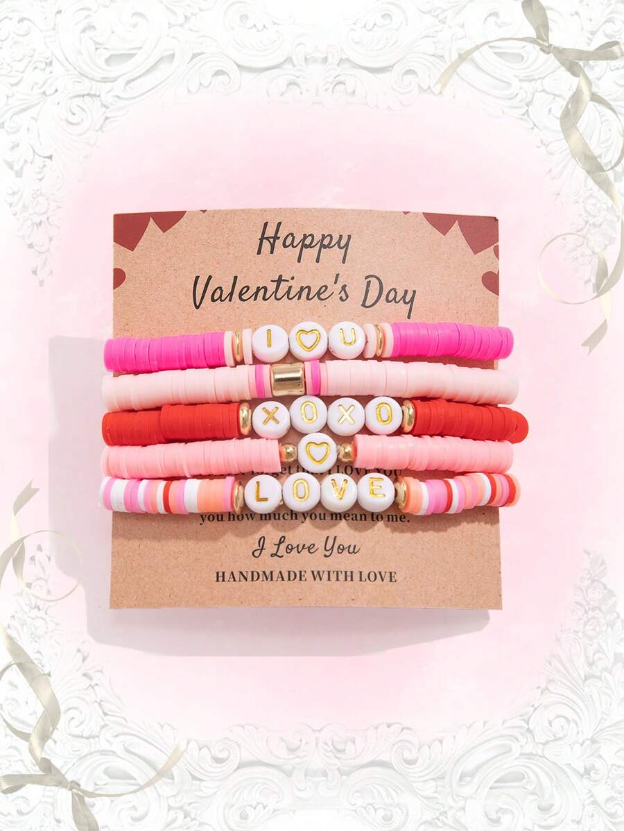Kawaii 5pcs/Set XOXO/Love Letter Beaded Bracelet, Romantic Jewelry Gift For Women On Valentine's Day