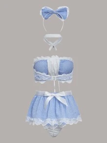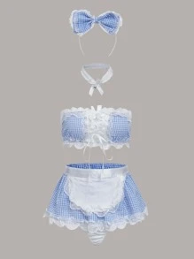 Kawaii 6pack Gingham Maid Costume Set With Hair Hoop