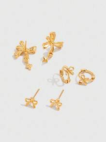 Kawaii 6pcs Fashionable, Sweet, Cute & Minimalist Bow Stud Earrings, Holiday Gift