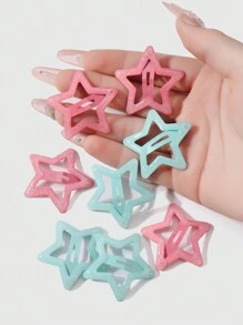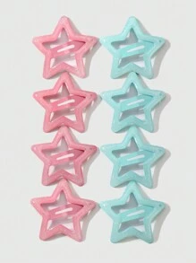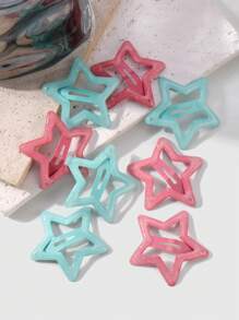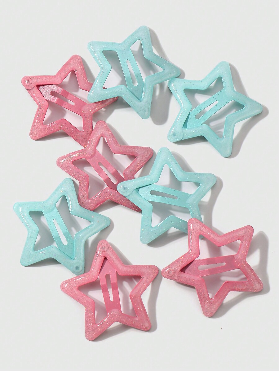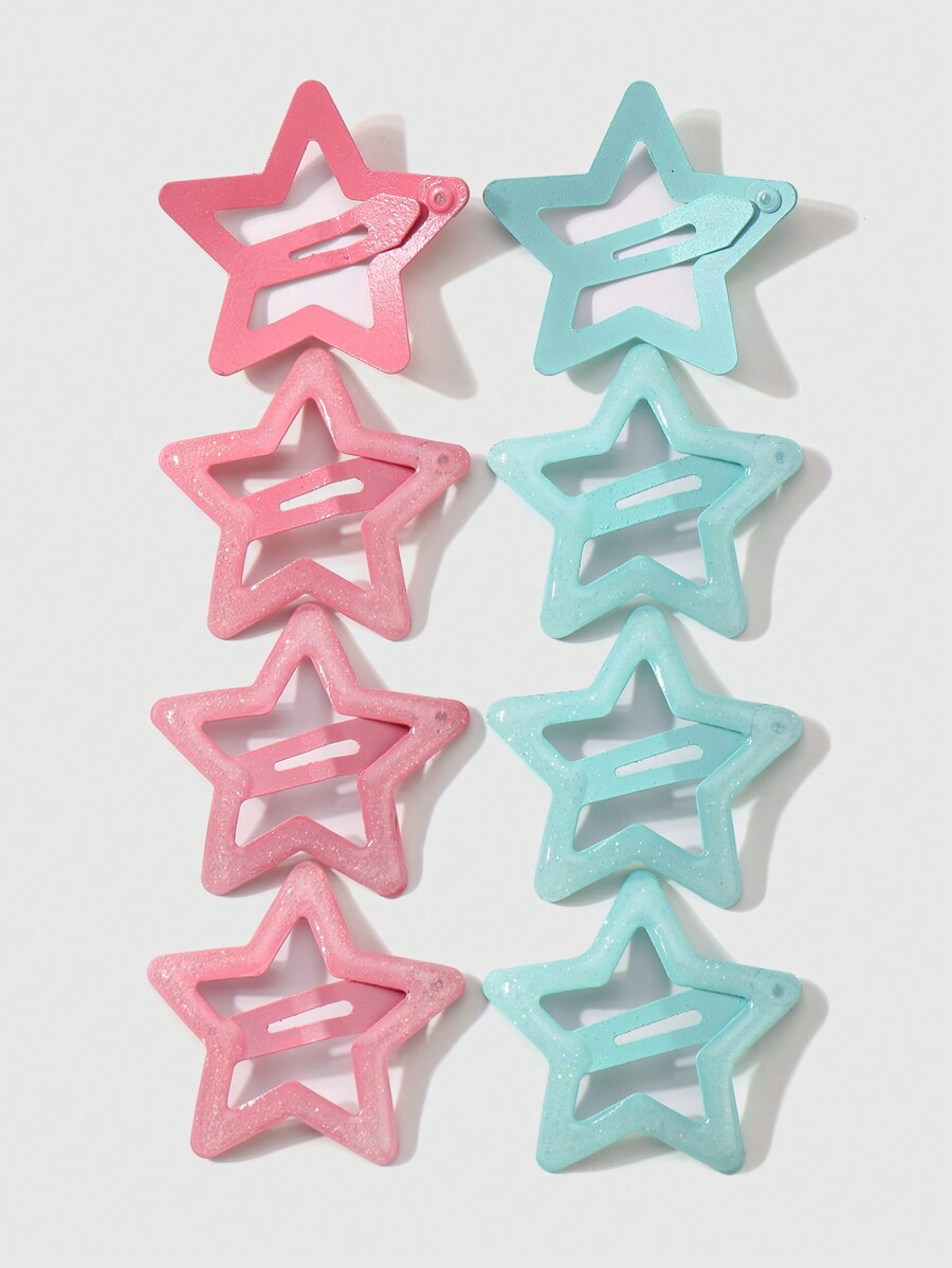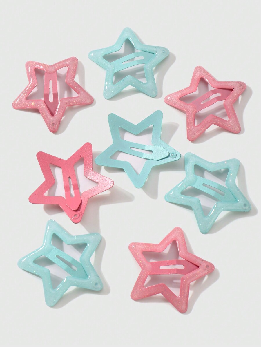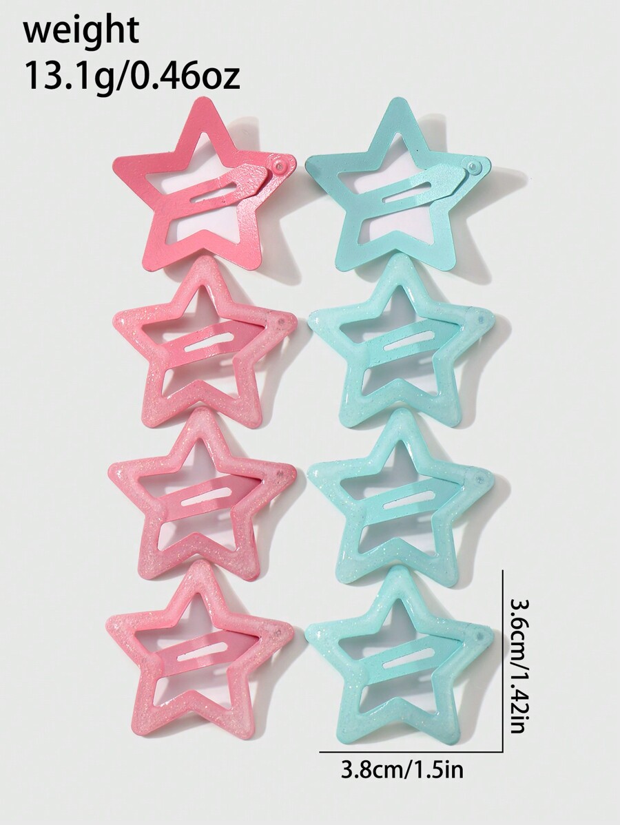 Kawaii 8pcs/Set Fashionable Delicate Luxury Cute Versatile Blue + Pink Sequin Star Hair Clips Barrettes Combo, Suitable For Women Daily Wear, Holiday Gift