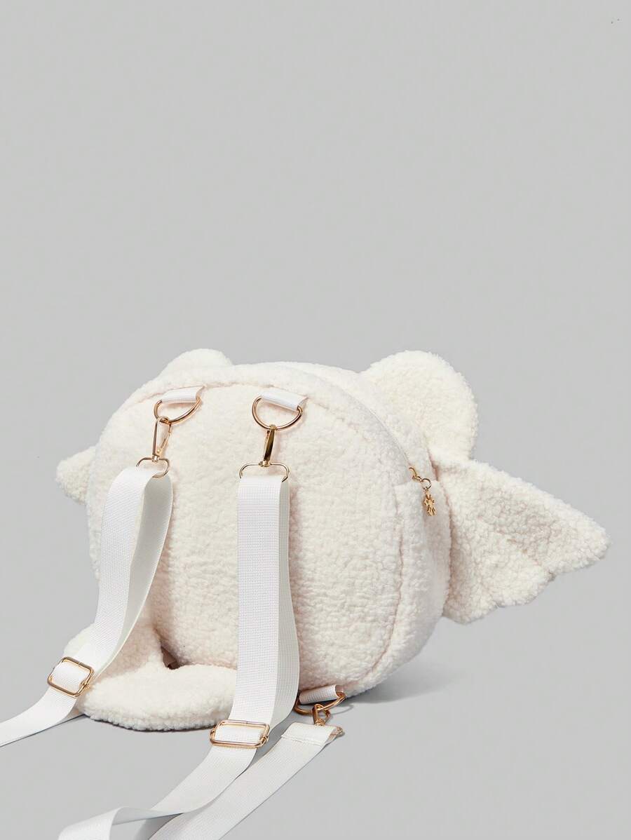 Kawaii Angel Wings White Fleece Plush Ita Bag With Pink Plaid Lining Ideal For School & Travel