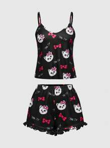 Kawaii Baby Cat Bowknot Casual Women's Pajama Set