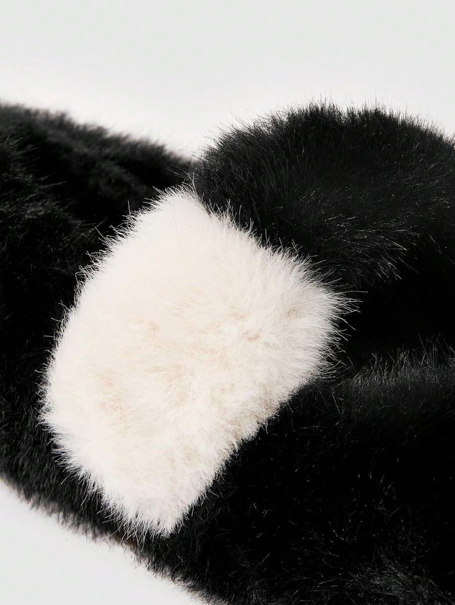 Kawaii Black Slip-On Loafers With Fluffy Soft Sole, Plush Furry Indoor Slippers For Women Flat For Christmas And New Year Holiday Vibe Fall And Winter