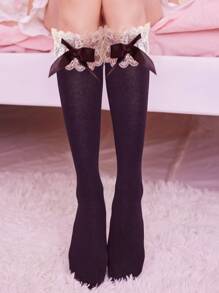 Kawaii Bow Decor Lace Trim Over The Calf Socks