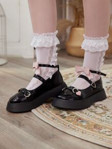 Kawaii Bow & Heart Decor Flatform Mary Jane Shoes