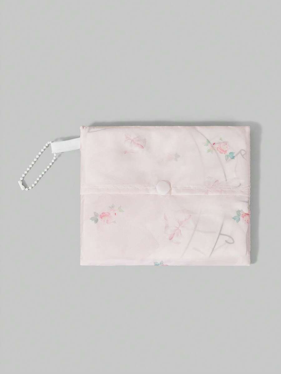 Kawaii Bowknot & Heart Lace Print Large Capacity Foldable Tote Bag With Zipper Pouch, 401422