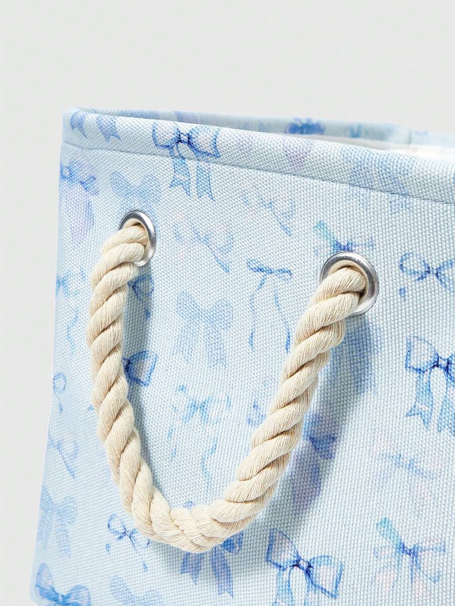 Kawaii Cartoon Blue Bow Thick Storage Basket, Dirty Clothes Hamper 1203407