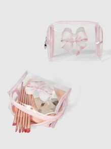 Kawaii Cartoon Girl Heart Bow Portable High-Capacity Makeup Bag Women's Clutch Coin Purse 401422
