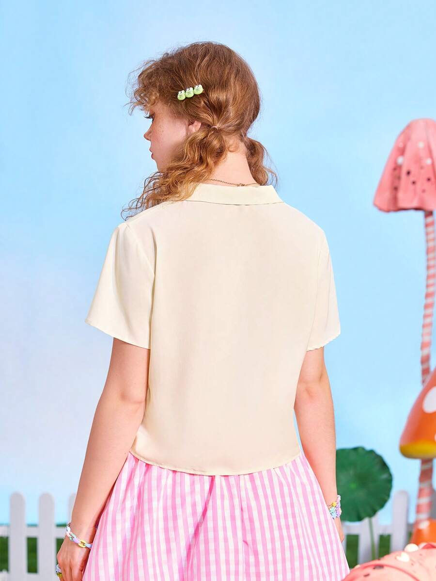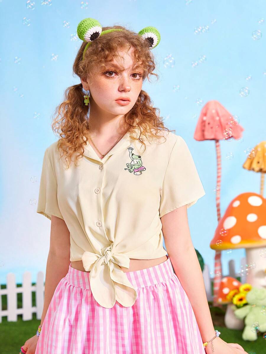 Kawaii Cartoon Graphic Knot Hem Shirt