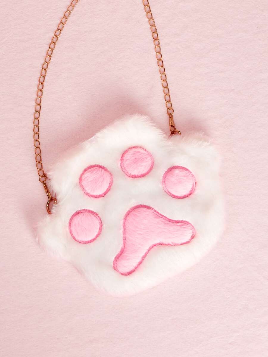 Kawaii Cartoon Paw Design Fluffy Chain Novelty Bag