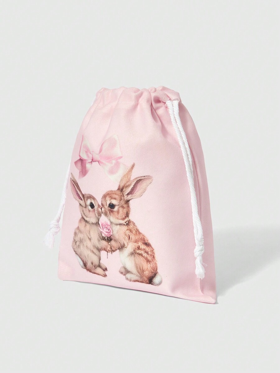 Kawaii Cartoon Vintage Bowknot Bunny Portable Large Capacity Drawstring Cosmetic Bag Storage Pouch 771268