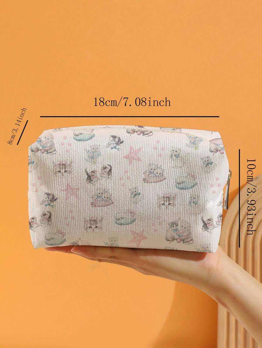 Kawaii Cat Star & Paw Print Octagonal Velvet Cosmetic Bag