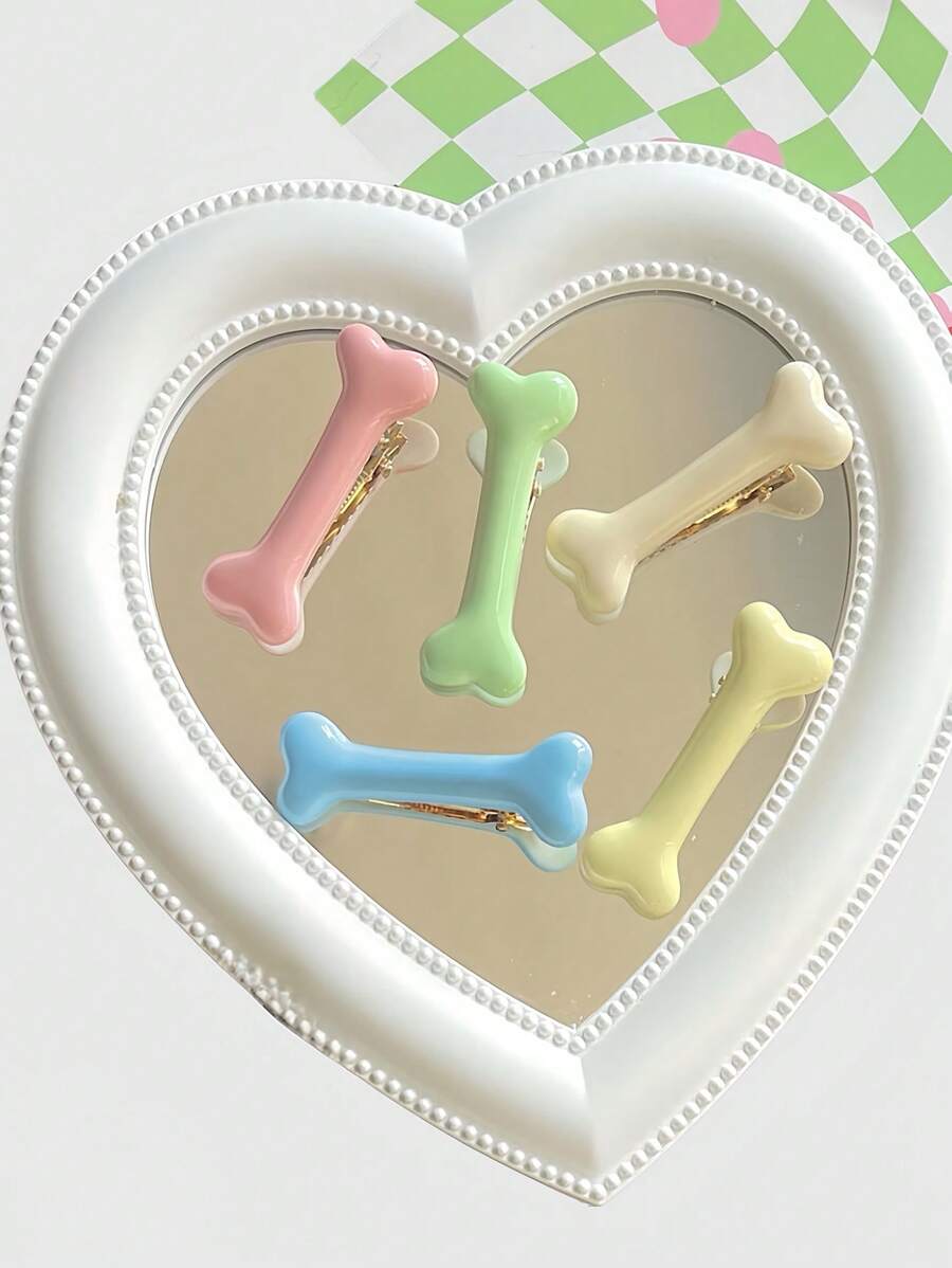 Kawaii Cream Colored Cute Bone Shaped Hair Clips, Soft And Sweet Girl Heart Design, Funny Japanese Style Hair Accessories