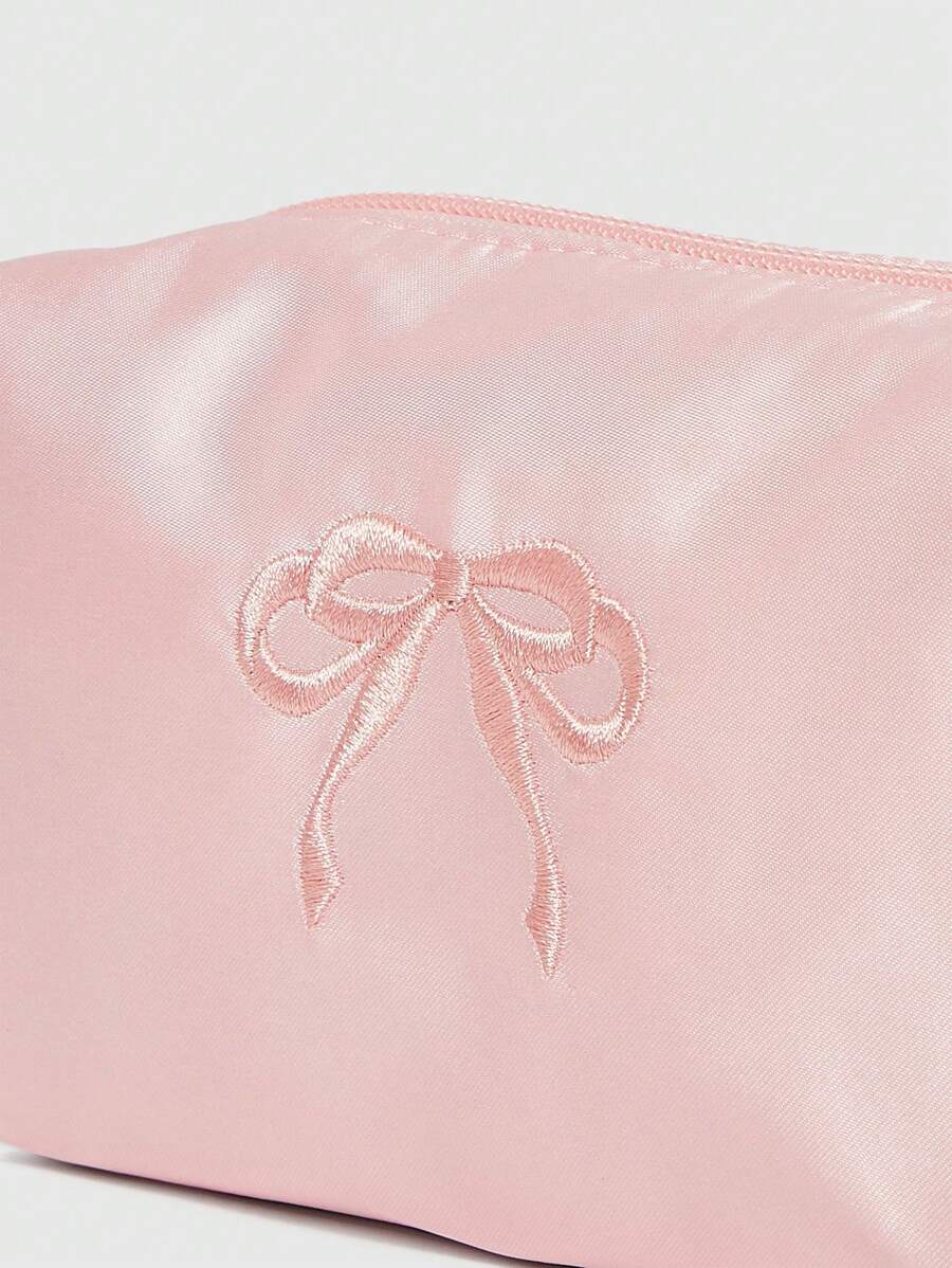 Kawaii Cute Bow Embroidered Pink Cosmetic Bag
