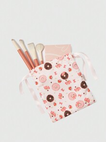 Kawaii Cute Cartoon Printed Bowknot Drawstring Storage Bag Portable Makeup Bag With Closure