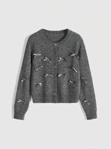 Kawaii Cute Casual Bow Decor Cardigan For Girls