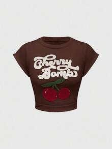 Kawaii Cute & Innocent Collegiate Style Cherry Embroidered High Neck Lantern Sleeve Women Sweater