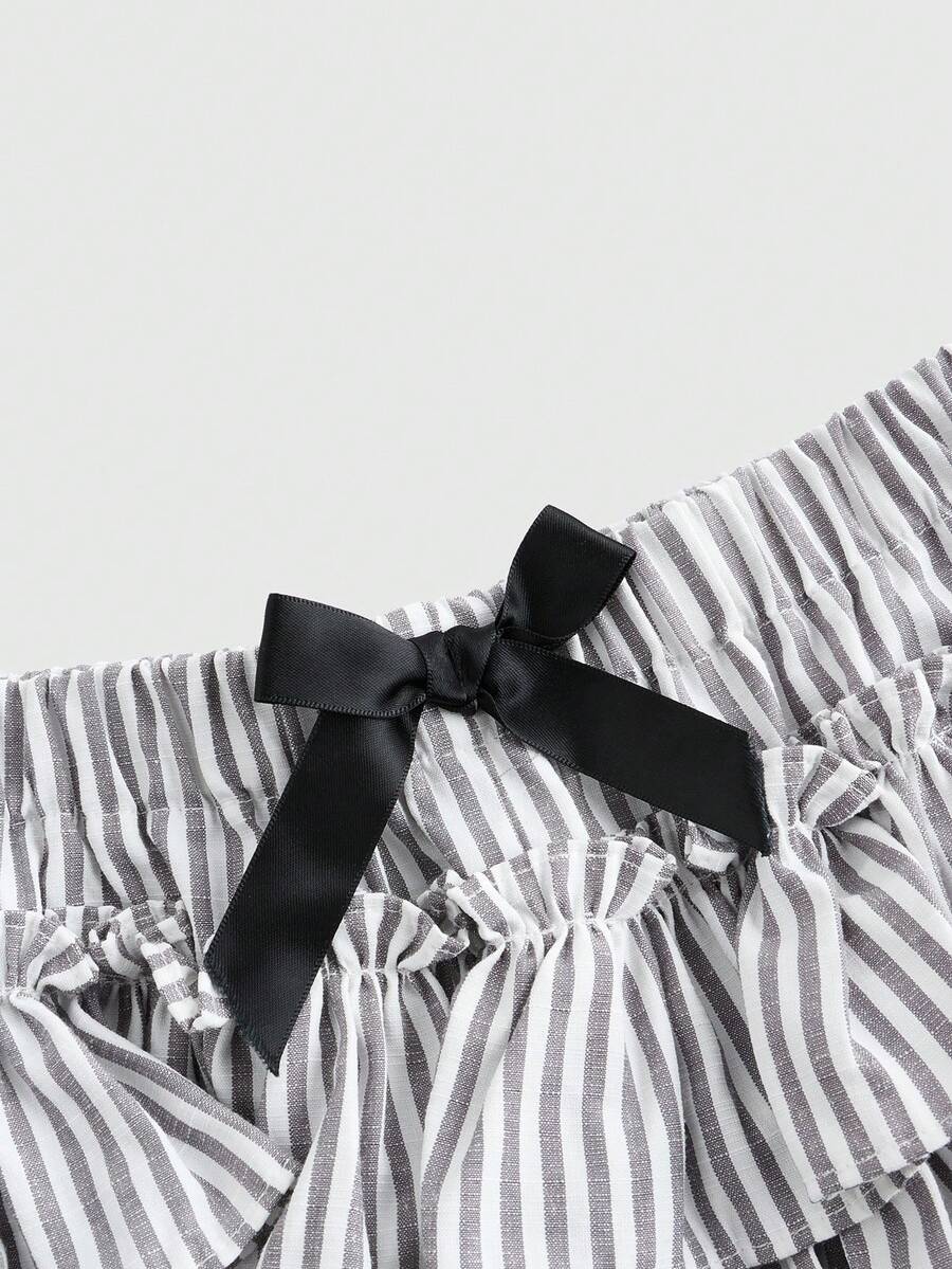 Kawaii Cute Low-Waist Bow Decor Striped Multi-Layer Peplum Pumpkin Shorts For Women