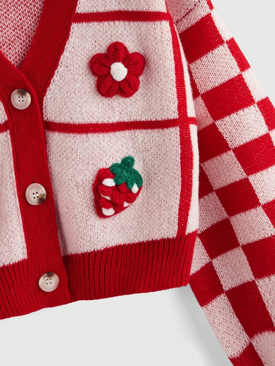 Kawaii Cute Pastoral Floral & Strawberry Embroidered Christmas Cardigan Sweater For Women