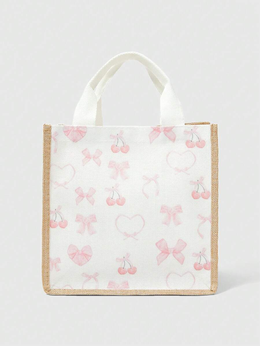 Kawaii Cute Pink Bow & Cherry Blossom Bow Print Women Handbag