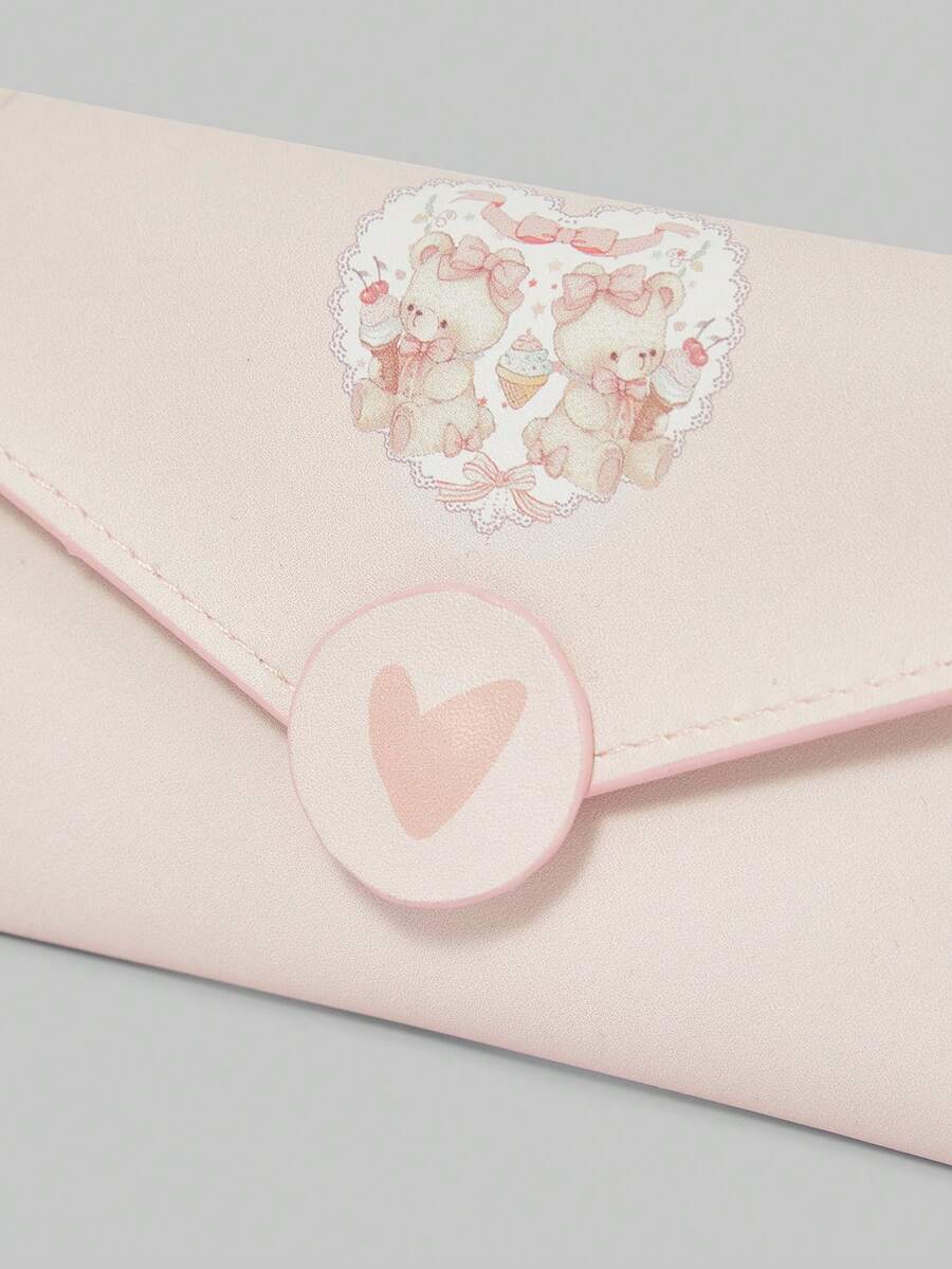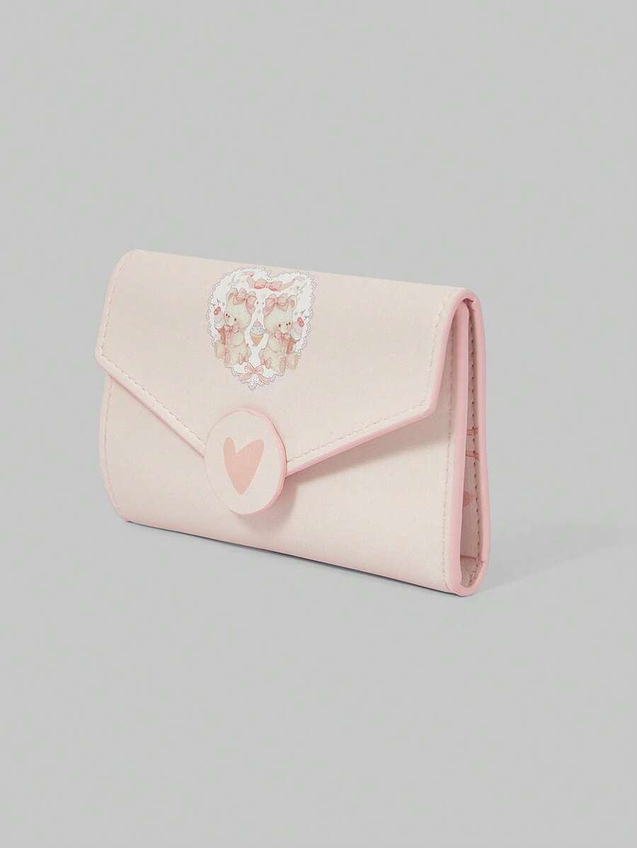 Kawaii Cute Pink Butterfly & Teddy Bear Print Compact Cardholder