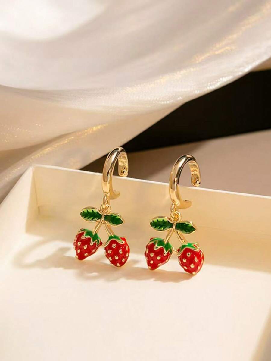 Kawaii Cute Sweet Fresh Fruit Strawberry Design Earrings For Girls, Women