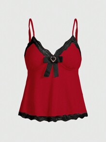 Kawaii Cute & Sweet Textured Fabric Bow Lace Decor Camisole Top For Women