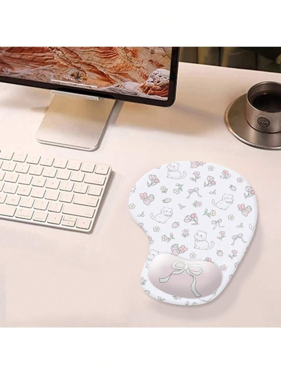 Kawaii Cute White Kitten, Bow & Floral Pattern Anti-Slip Waterproof Thick Mouse Pad, Model 999058