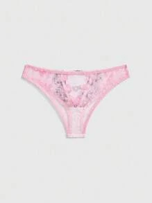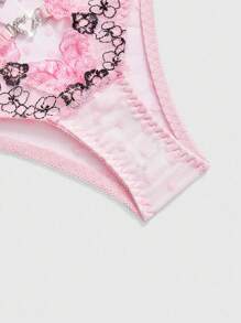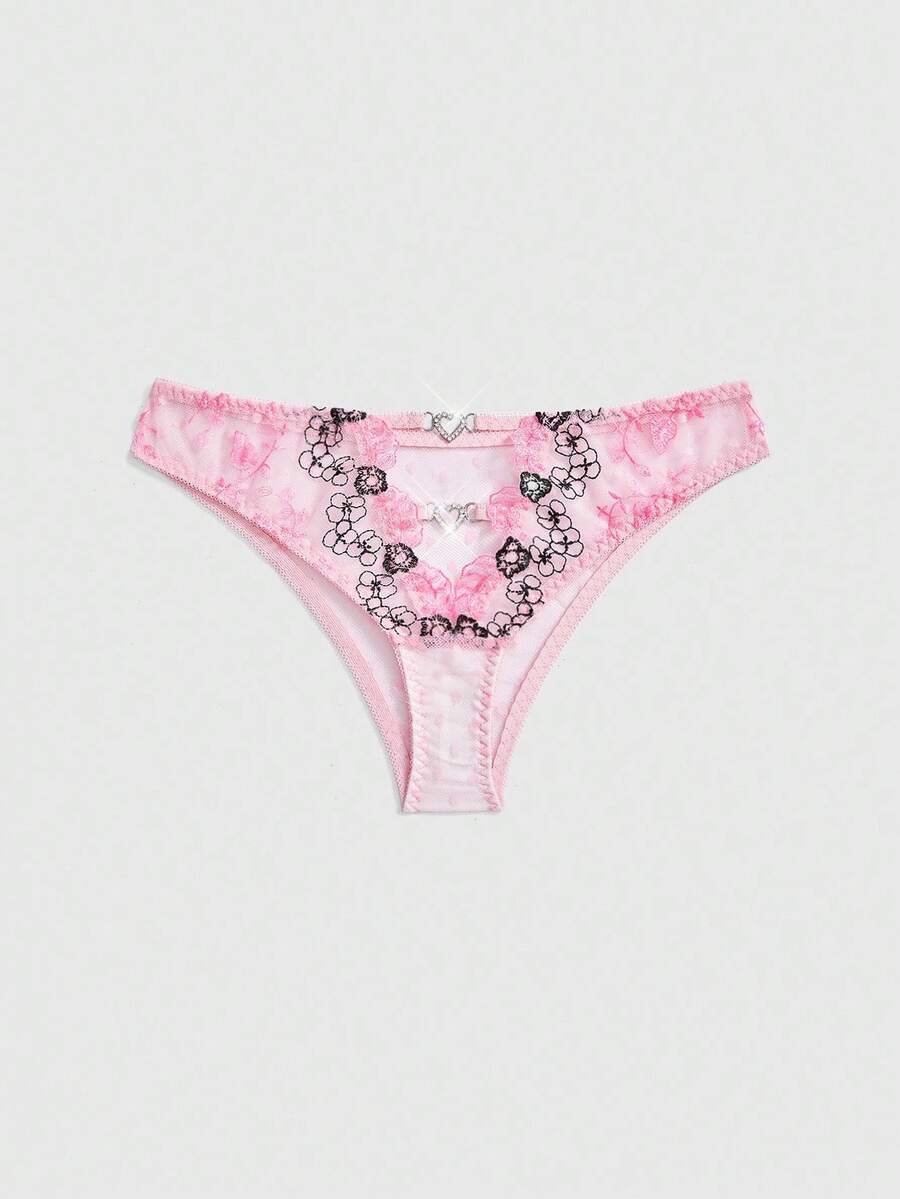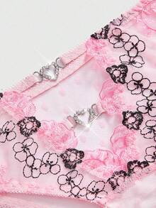 Kawaii Delicate Embroidered Floral & Heart Metallic Shiny Mesh Women's Panties