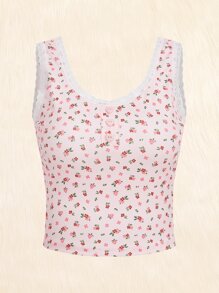Kawaii Ditsy Floral Lace Trim Tank Top