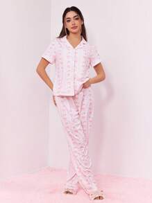 Kawaii Elegant Princess Style Sweet Floral Print Lapel Short Sleeve Shorts Pajama Set For Women, Summer