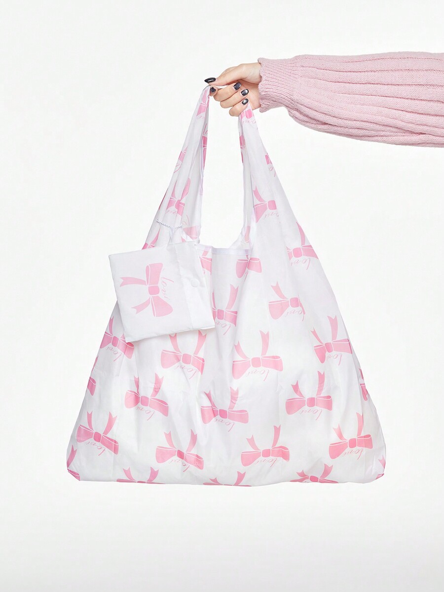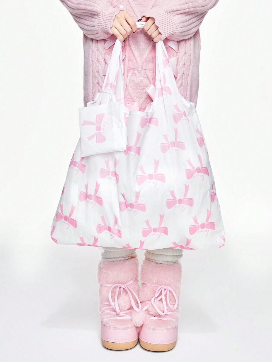 Kawaii Fashion Cartoon Bow Decor Large Capacity Portable Foldable Tote Bag With Coin Purse