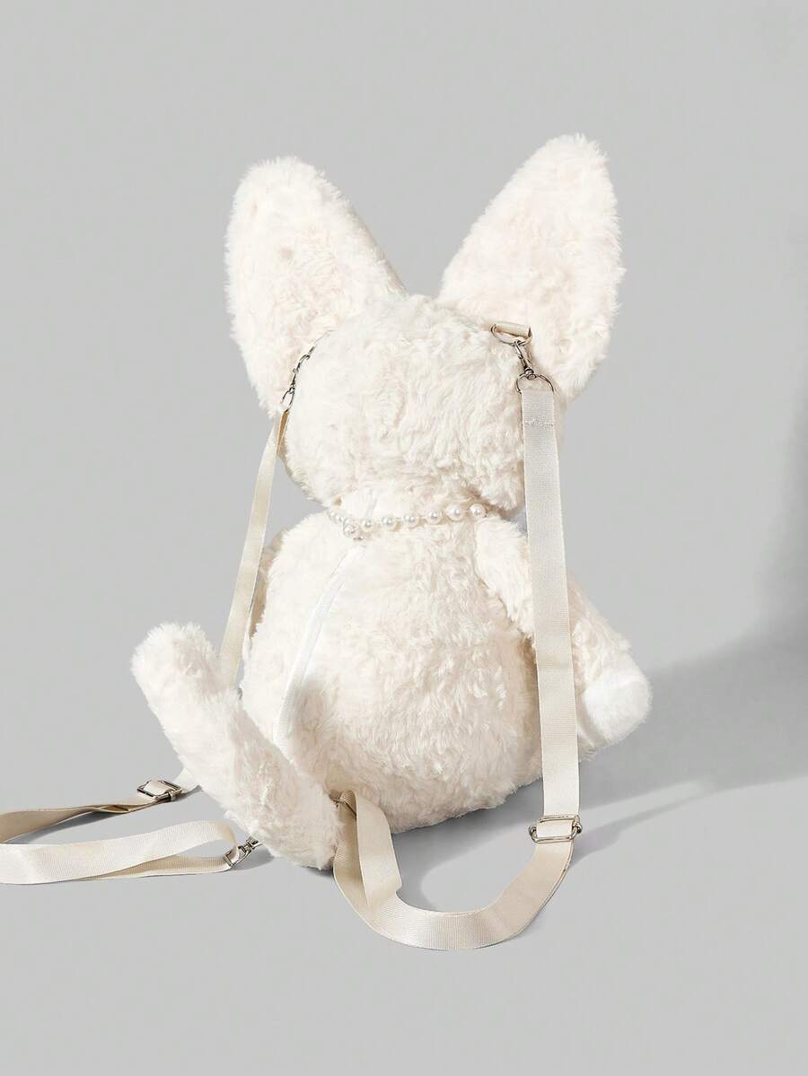Kawaii Fashion Color-Blocked Cartoon Fuzzy Girls' Backpack, Cute School Bag For Women