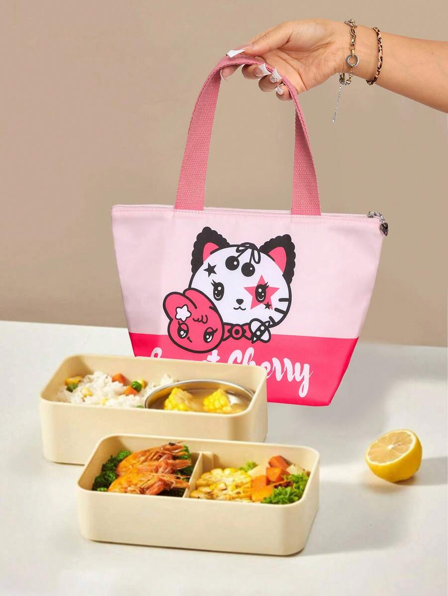 Kawaii Fashionable Cartoon Cat & Rabbit Design Lunch Bag With Aluminum Foil Insulated Inner Layer