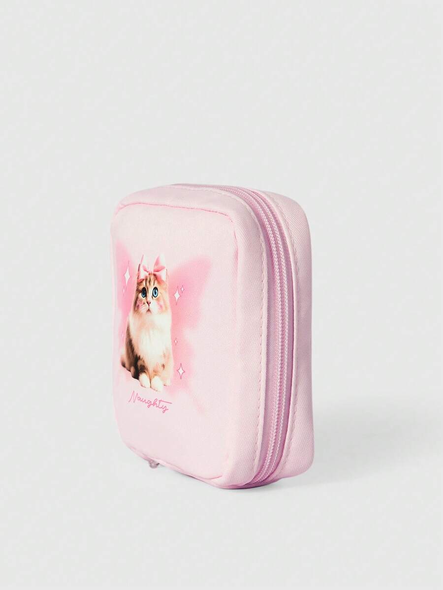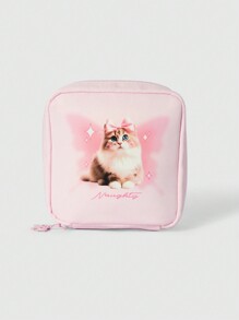 Kawaii Fashionable Cartoon Cat Thickened Quilted Large Capacity Portable Cosmetic Bag, Small Square Bag 619986