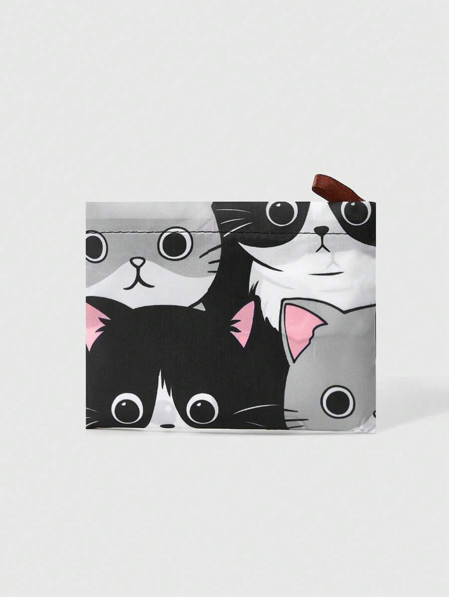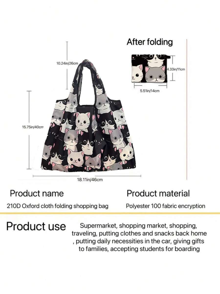 Kawaii Foldable Shopping Bag Tote With Cartoon Cat Print 411302