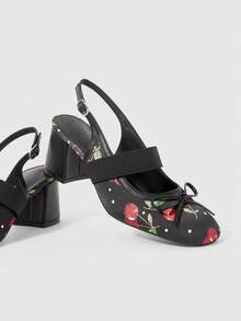 Kawaii French Mary Jane Backless Fashionable Elegant Commuter Contrasting Plaid Fabric High-End Women Chunky Heel Pumps