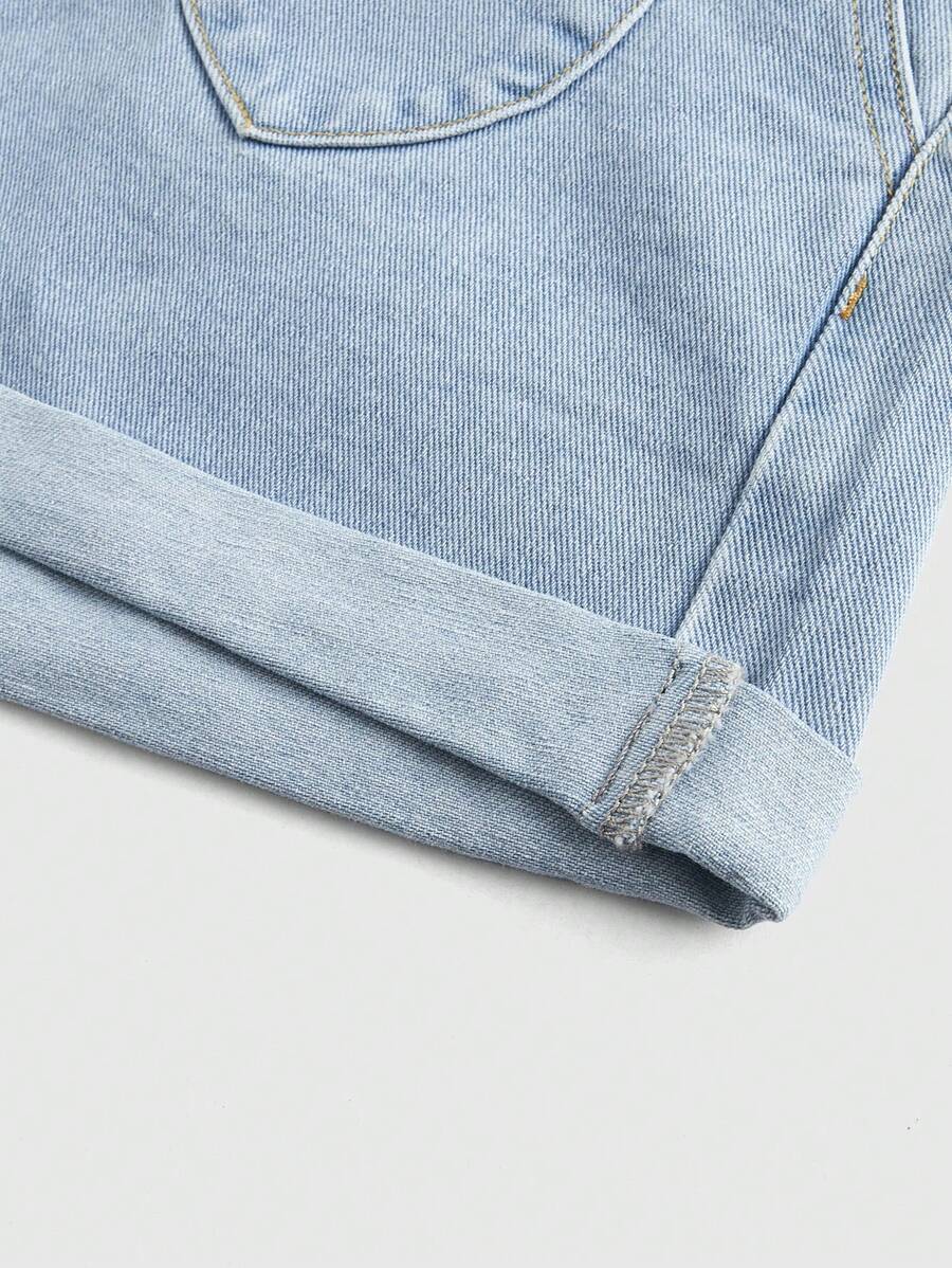 Kawaii Girls' Sweet Bowknot Drawstring Heart-Shaped Patch Decorated Denim Shorts With Lace Trimmed Hem And Back Pocket, School