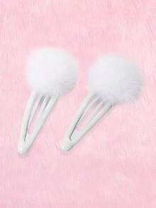 Kawaii 2pcs Women Pom Pom Decor Snap Clip