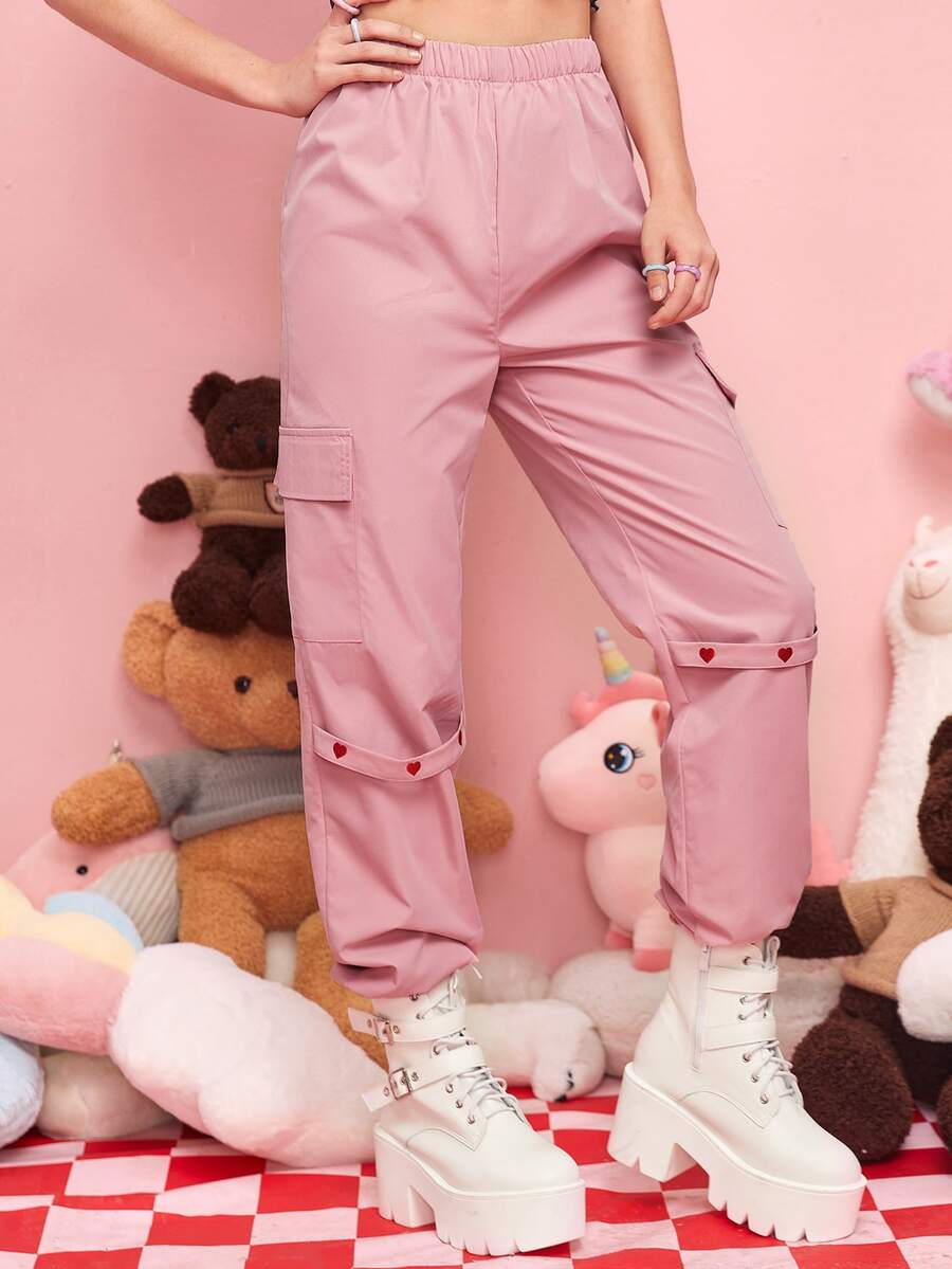 Kawaii Heart Embroidery Cargo Pants