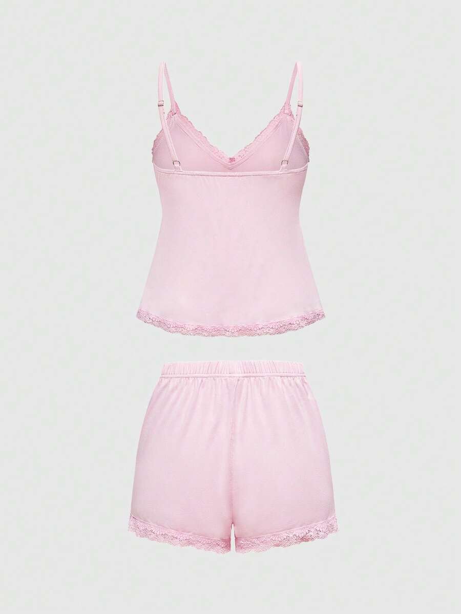 Kawaii Babydoll Pink Casual Comfortable Loose Women Pajama Sets, Summer