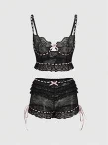 Kawaii Romantic Regal Style Cake Lace Bowknot With Underwire Sexy Lingerie Set
