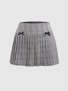 Kawaii Ladies' Y2k Ballet Style Tartan Plaid Low Waist Pleated Skirt With Bowknot Decoration