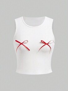 Minimalist Sexy Cute Kawaii 3d Color Block Bow Decorated Slim Fit Women's Tank Top, School