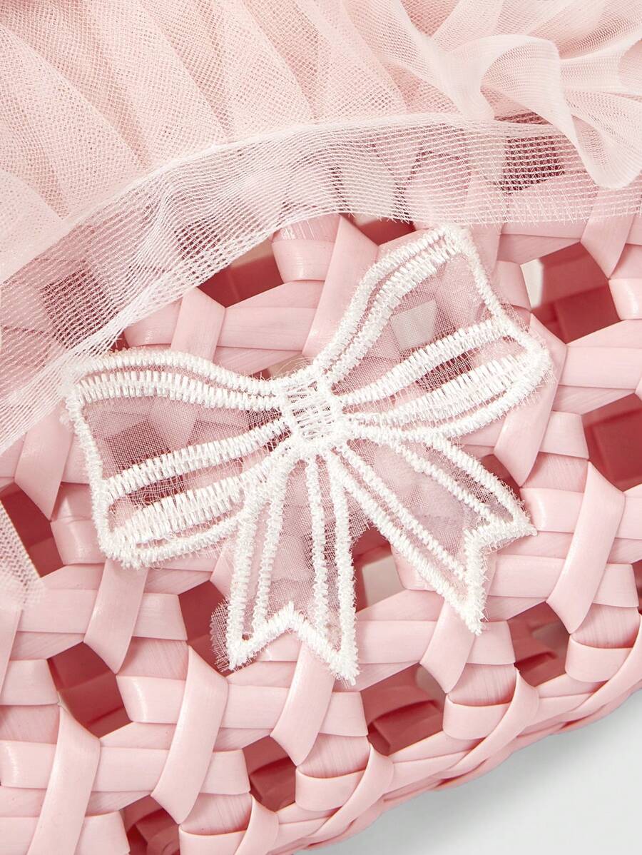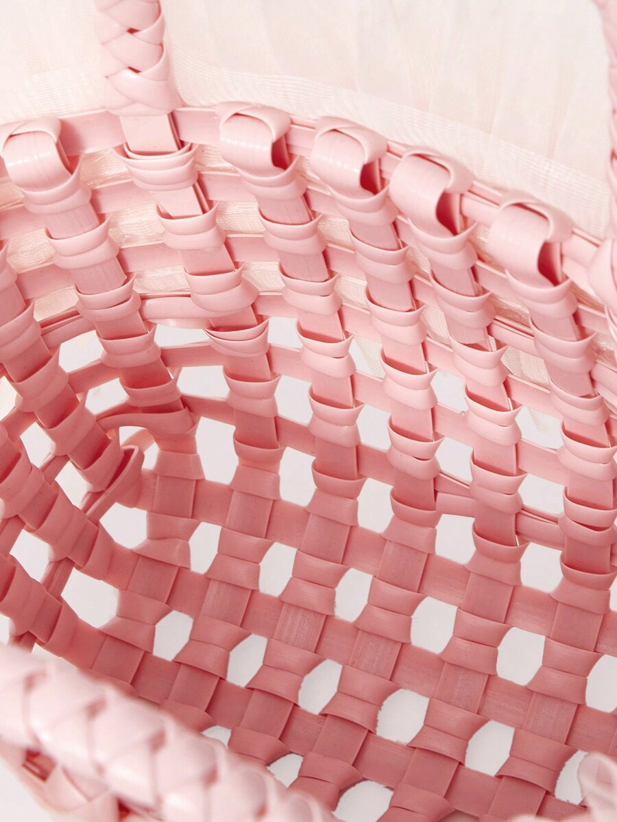 Kawaii New Ballet Style Pom Pom Trim Straw Woven Pink Bag