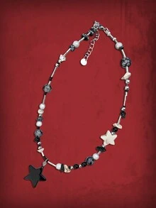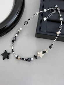 Kawaii 1pc Fashion Zinc Alloy Star Decor Beaded Necklace For Women For Daily Decoration