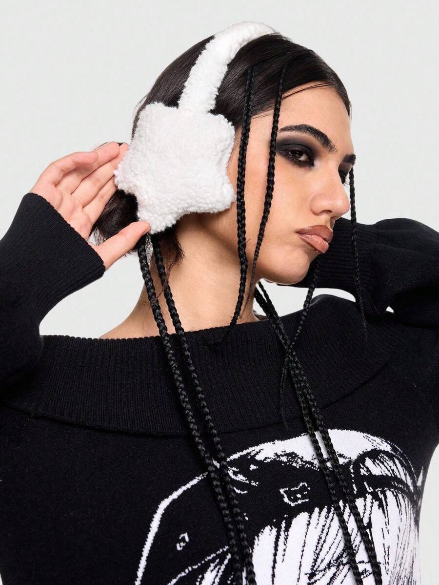 Kawaii Personalized Star Plush Earmuffs, Casual Outdoor Use, Thick Plush Warm Earmuffs For Autumn/Winter