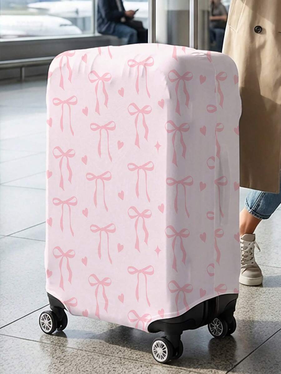 Kawaii Pink Bow Pattern Luggage Protection Cover, Suitable For 18-32 Inch Luggage Covers, Luggage Handle Gloves, Travel Accessories