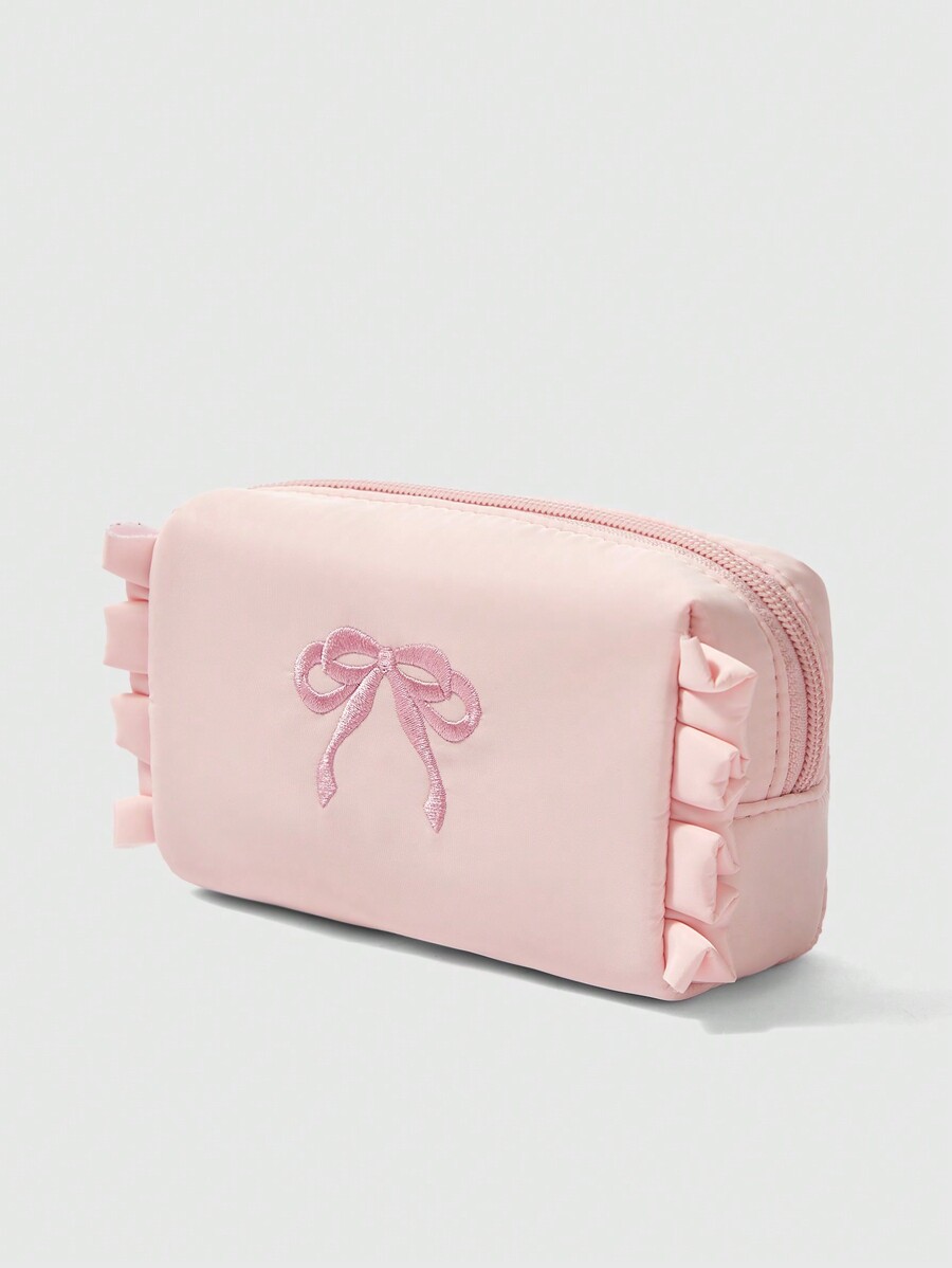 Kawaii Pink Embroidered Bowknot Cute Cosmetic Bag